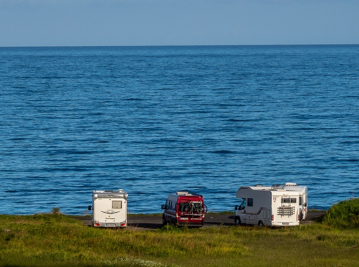 Etter toppturen kjører vi gjennom tunnelen, og for en hundrelapp overnatter vi på enkle og fasilitetsløse Uttakleiv Sea Camping, like ved Uttakleiv-stranden, som i 2005 av Time Magazine ble kåret til Europas mest romantiske. Vi står der sammen med noen få andre bobiler. Eieren av denne plassen, har det vist seg senere, hadde ikke tillatelse til å drive med camping, og i dag er den visstnok stengt.