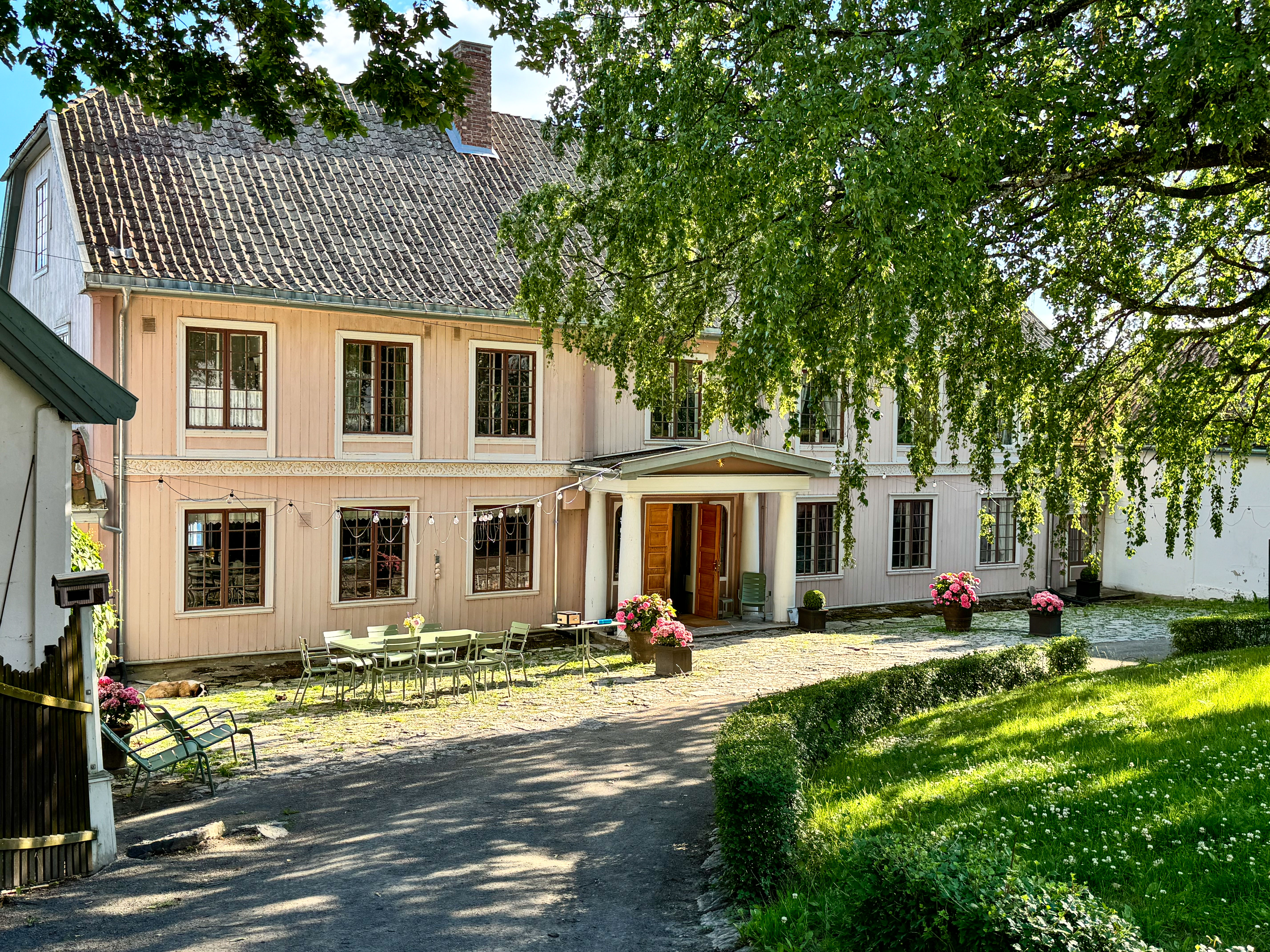 Mange oppsøker Helgøya på grunn av den kjente Helgøya Klatrepark. Andre dukker opp for å beskue en av landets fineste hager. På Nes og Helgøya ligger nemlig storgårdene nærmest på rekke og rad. Her er det faktisk mulig å gjøre en «storgårdssafari». Vi hadde for vår del Helgøya-gården Hovelsrud i siktet. Dessverre var det ikke mer fininnstilt enn at vi bommet på tidspunktet for omvisninger. Så den flotte hagen så vi aldri. Kun ankomstområdet, som også vitner om at det her ikke er et vanlig småbruk.