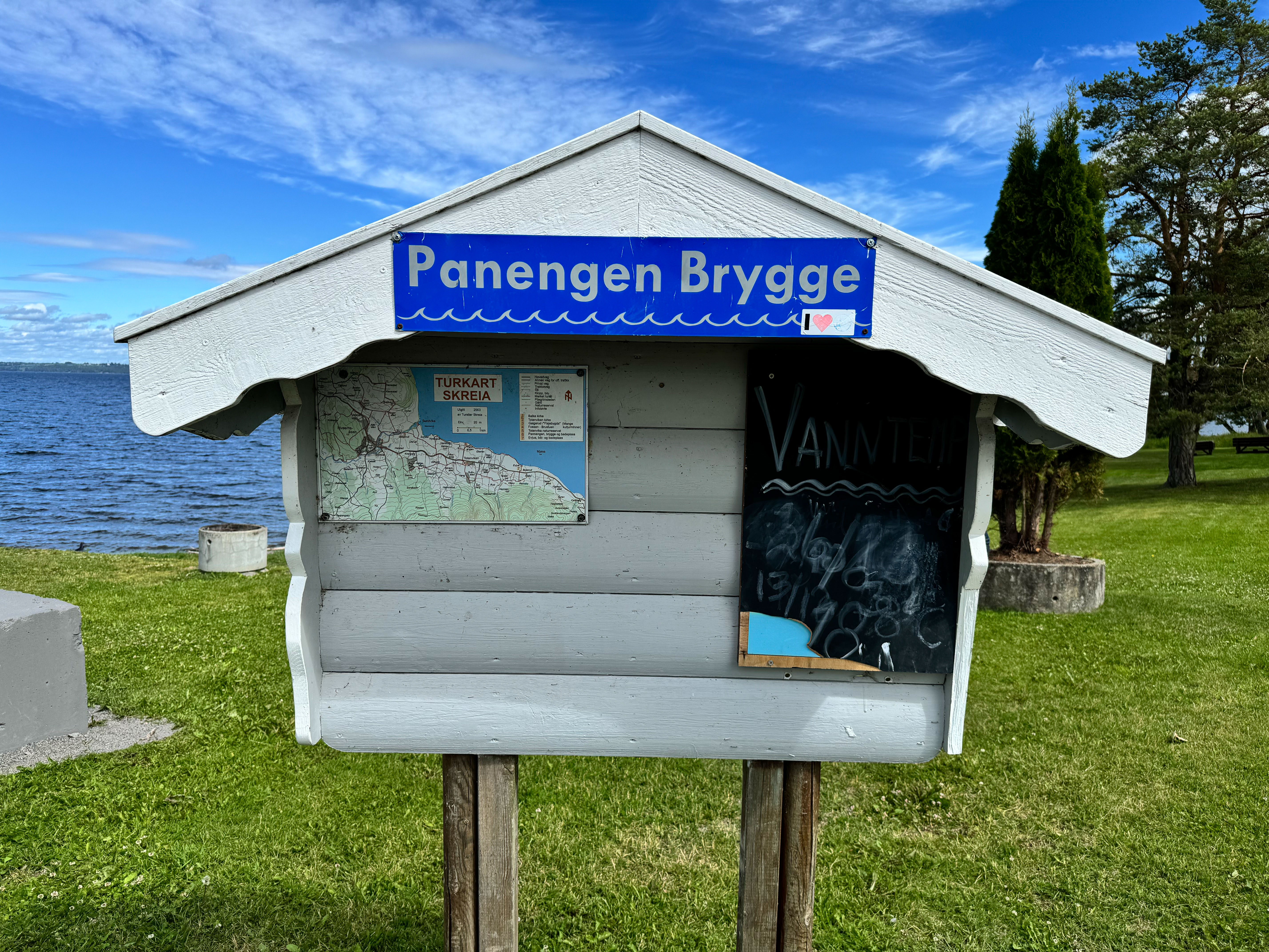 Men denne dagen ligger Norges kanskje mest kjente båt litt lenger sørover, ved Kapp Melkefabrikks brygge. På den korte veien dit sneier vi innom Panengen brygge i Totenvika. Ganske enkelt fordi appen park4night anbefaler den.