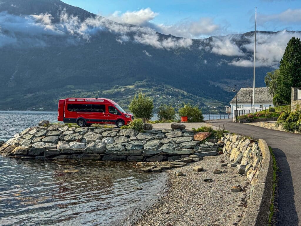 Dette er en lang tur, og den går fra A til B. Grovt sagt mellom Lofthus og Kinsarvik. Så man må velge startpunkt, og på ett eller annet vis komme seg tilbake til bilen man antageligvis har parkert et eller annet sted. Taxi eller shuttlebuss er de mest opplagte valgene. Eller man kan gjør som vi og mange andre gjør – ta inn på for eksempel Lofthus Camping eller Kinsarvik Camping, velge hvilken retning man vil gå, og ta shuttlebuss til start eller tilbake fra mål. Det enkleste er jo å ta bussen fra start, så har man ingen tidsfrister å forholde seg til senere.