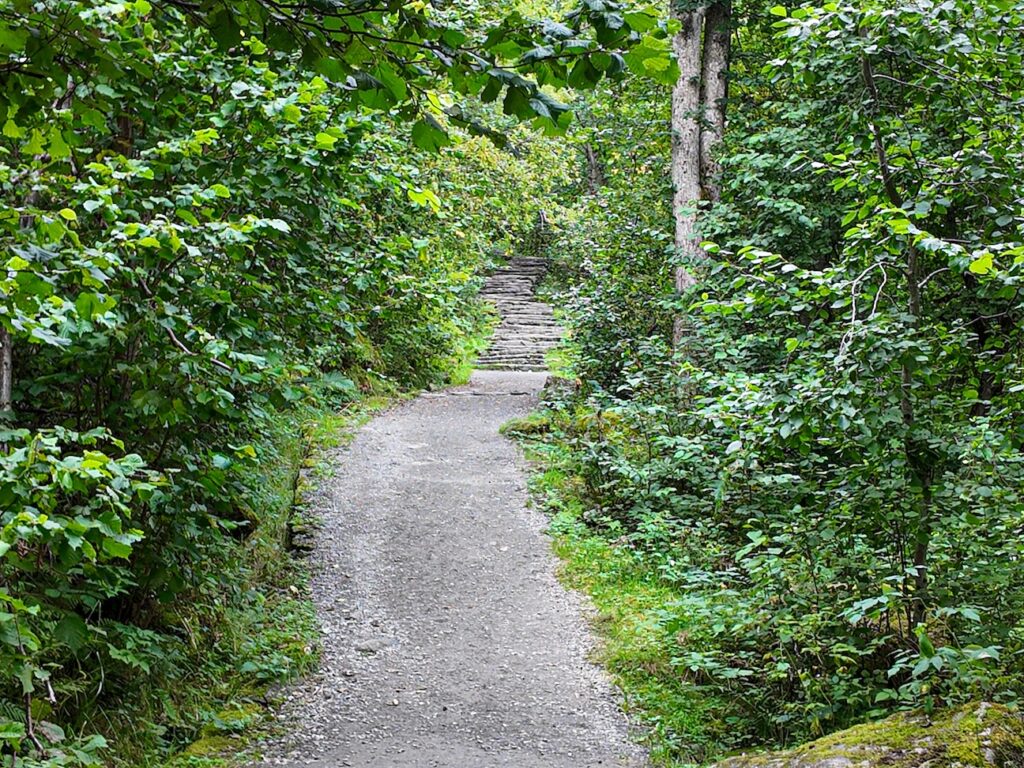 Fosseråsa-turen er på sett og vis tredelt. Området langs nevnte Storfossen er første etappe, og den klart korteste. Etappen herfra og opp til Westerås gard er den neste. Og så er turen derfra til den spektakulære Storsæterfossen den tredje. Vi rusler fra campingplassen ned mot sentrum og Hotel Union, og følger så skiltet inn mot selve stien oppover. Det advares mot å være uforsiktig i forhold til fossen. Sterke krefter er i sving! Og vi går på en flott sti i løvskog, med lyden av fallende vann som herlig selskap! Underlaget veksler mellom grus og steinheller.