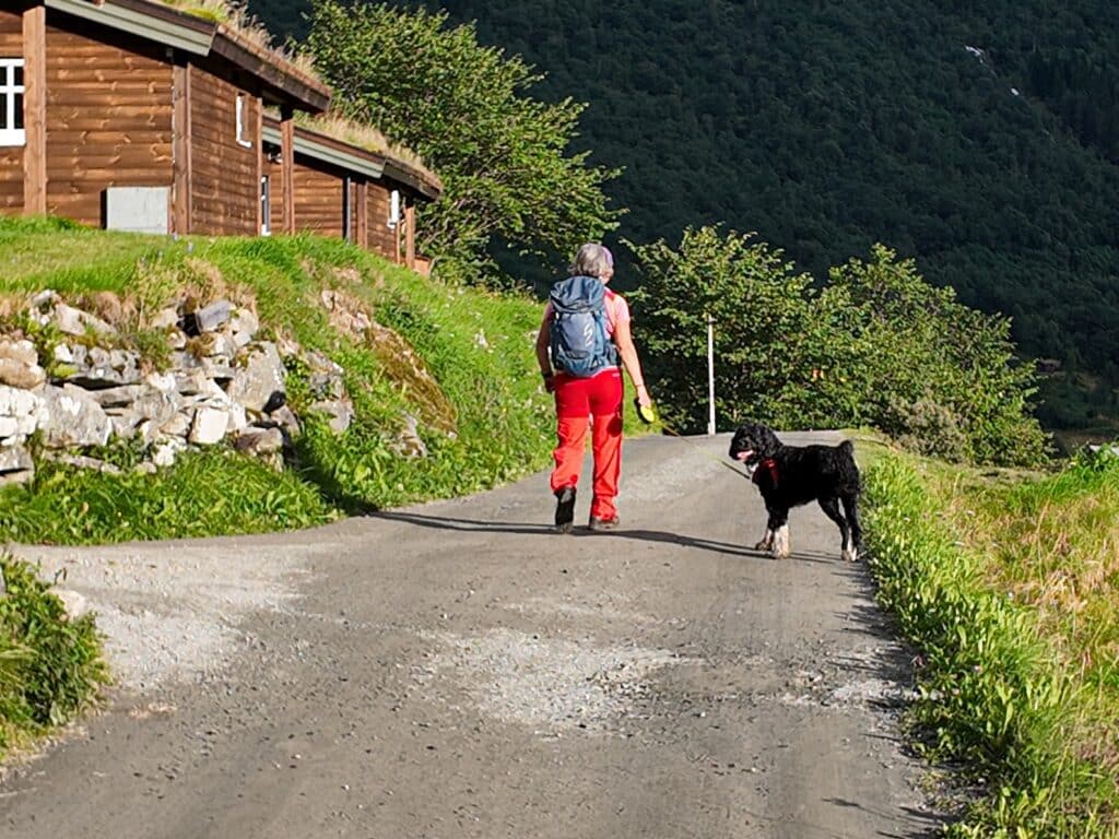 Vi fortsetter oppover mot Vesterås (som selv skriver navnet med «W»), vekselvis på stier og steintrapper. Kulturhistorie får vi med på kjøpet via boards her og der. Beitende sauer og geiter bidrar til en fredfull opplevelse i naturskjønne omgivelser.