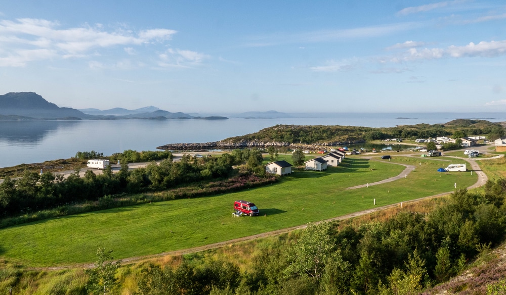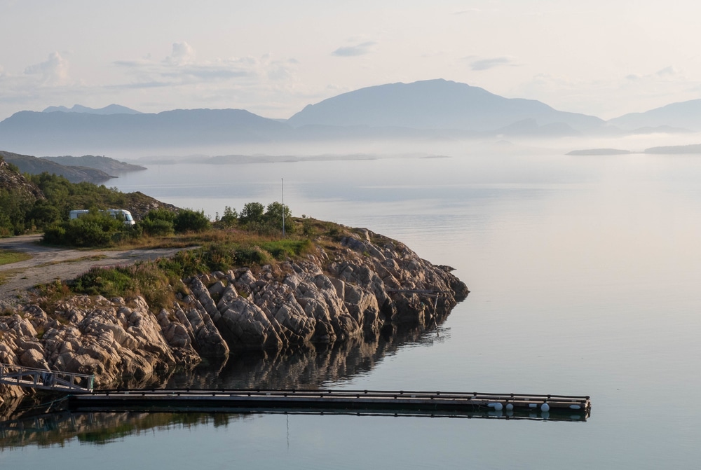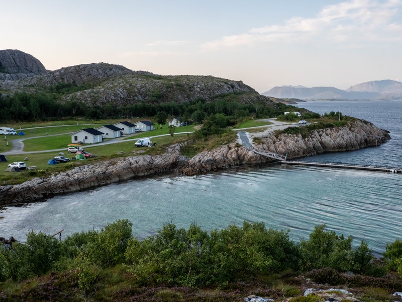 Som bildene under viser, var det for øvrig godt med tumleplass på Torghatten Camping tidlig i august 2019. Vi som har hund og ikke er så glade i å campe tett på andre, hadde det som plomma i egget. Flott kveldstur, utegrilling, litt vin og forventninger om dagene som ventet – denne ettermiddagen og kvelden var det særdeles godt å ha en campervan som base camp.